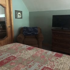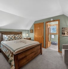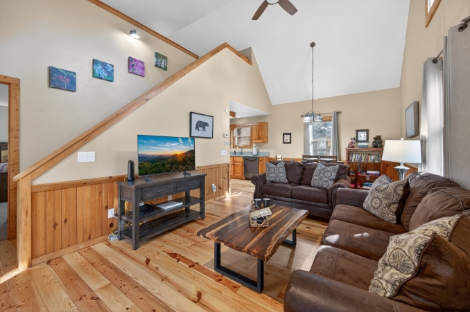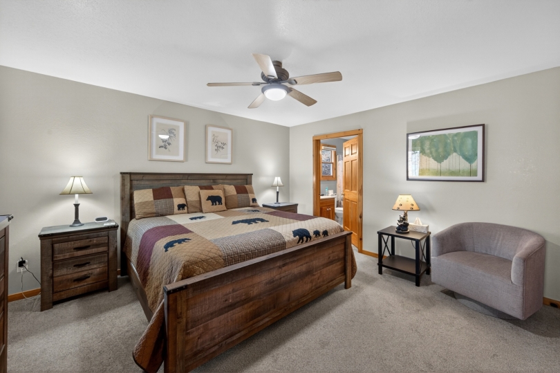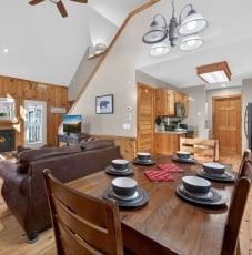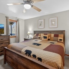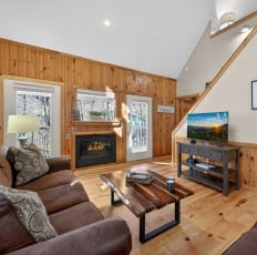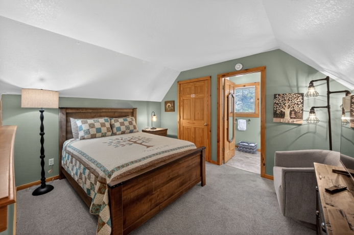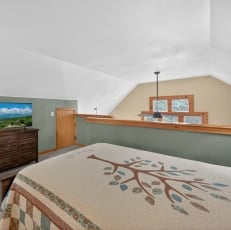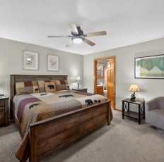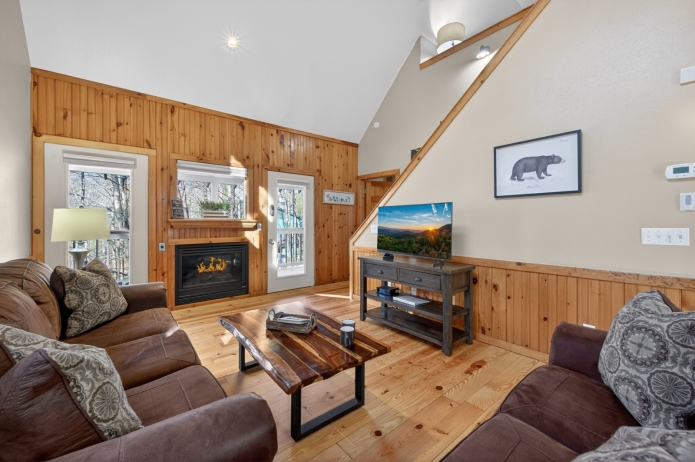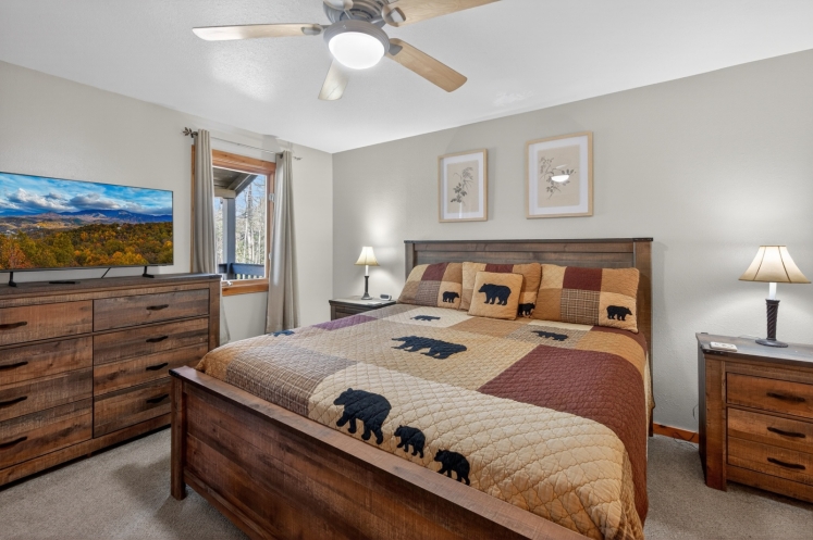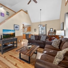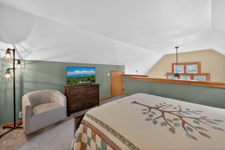 The living area offers two comfy recliners, the sleeper sofa, and of course a large TV, free wi-fi and a cozy gas fireplace. Just off the living area is a private bedroom with a king bed and full bathroom. The 2nd loft bedroom offers a comfortable queen bed with another full bath.