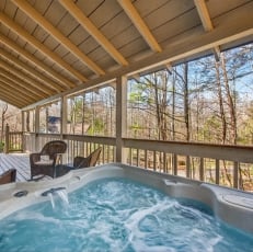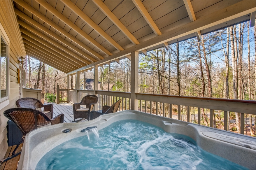 Enjoy the quiet mountain air on the covered deck, or take a relaxing dip in the hot tub. An outdoor picnic table and gas grill make grilling out a breeze.
